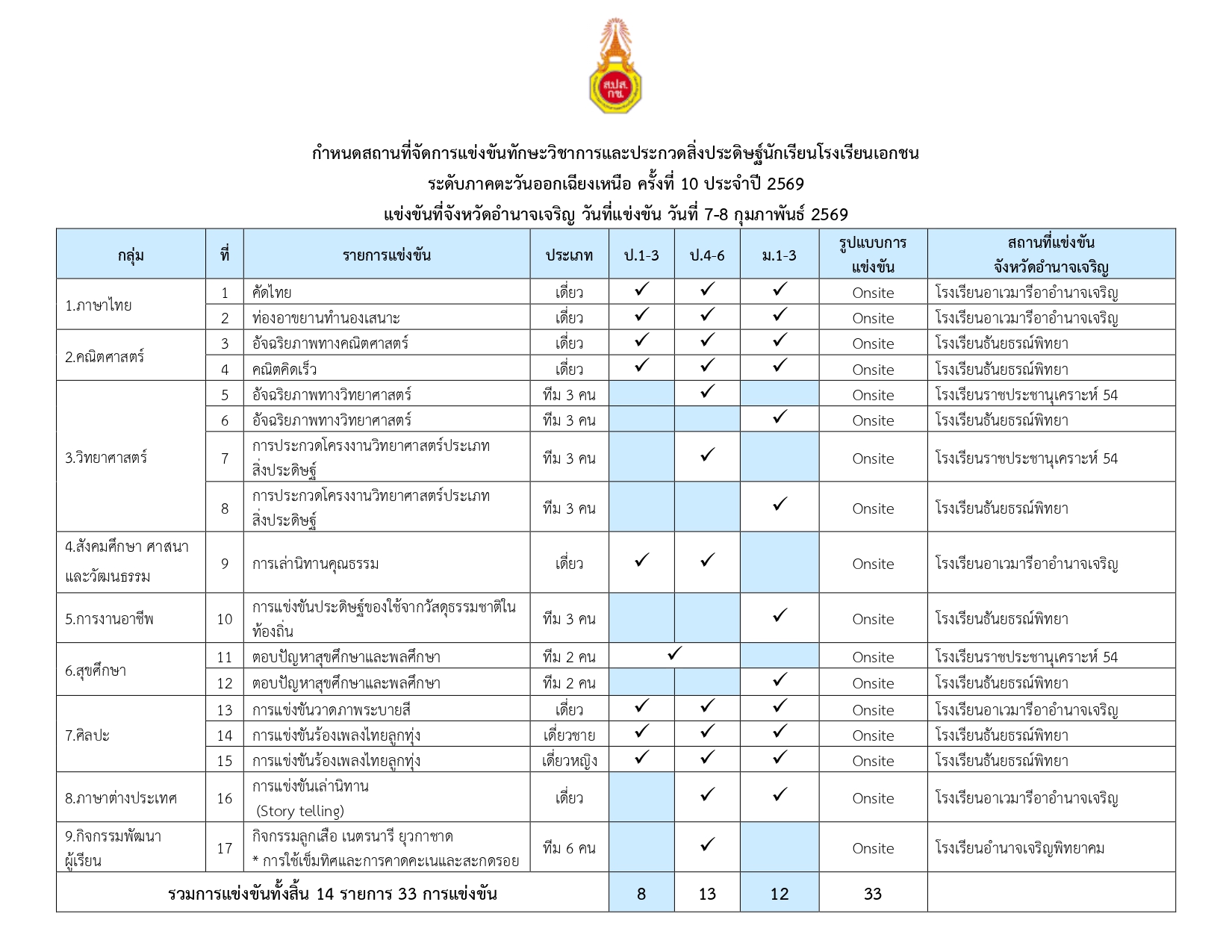 กำหนดการแข่งขันทักษะวิชาการฯ